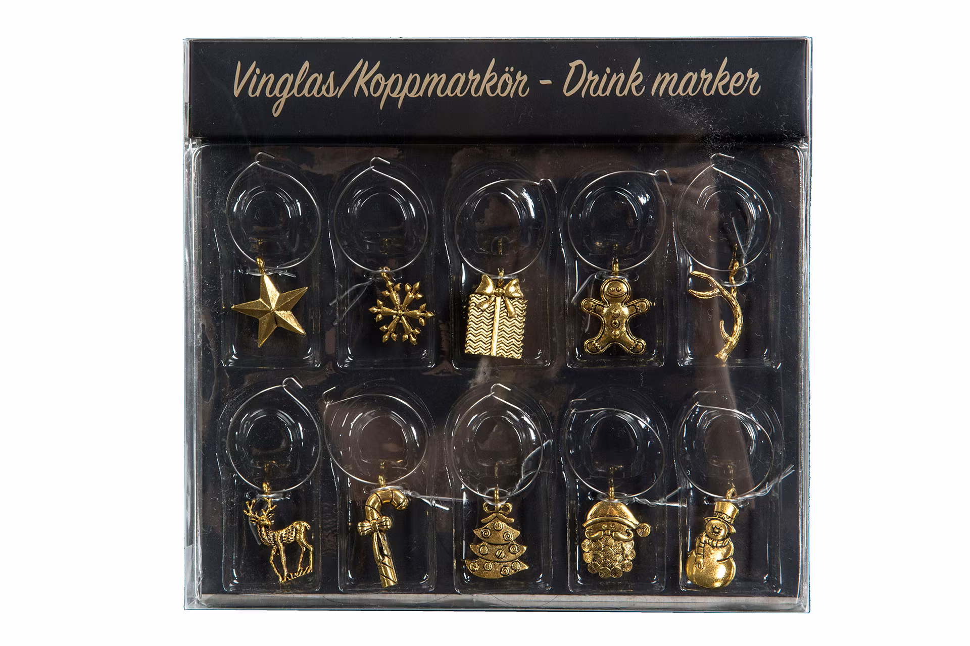 Gör det enkelt för dina gästar att veta vilket glas som är deras med detta set med tio glas/koppmarkörer.