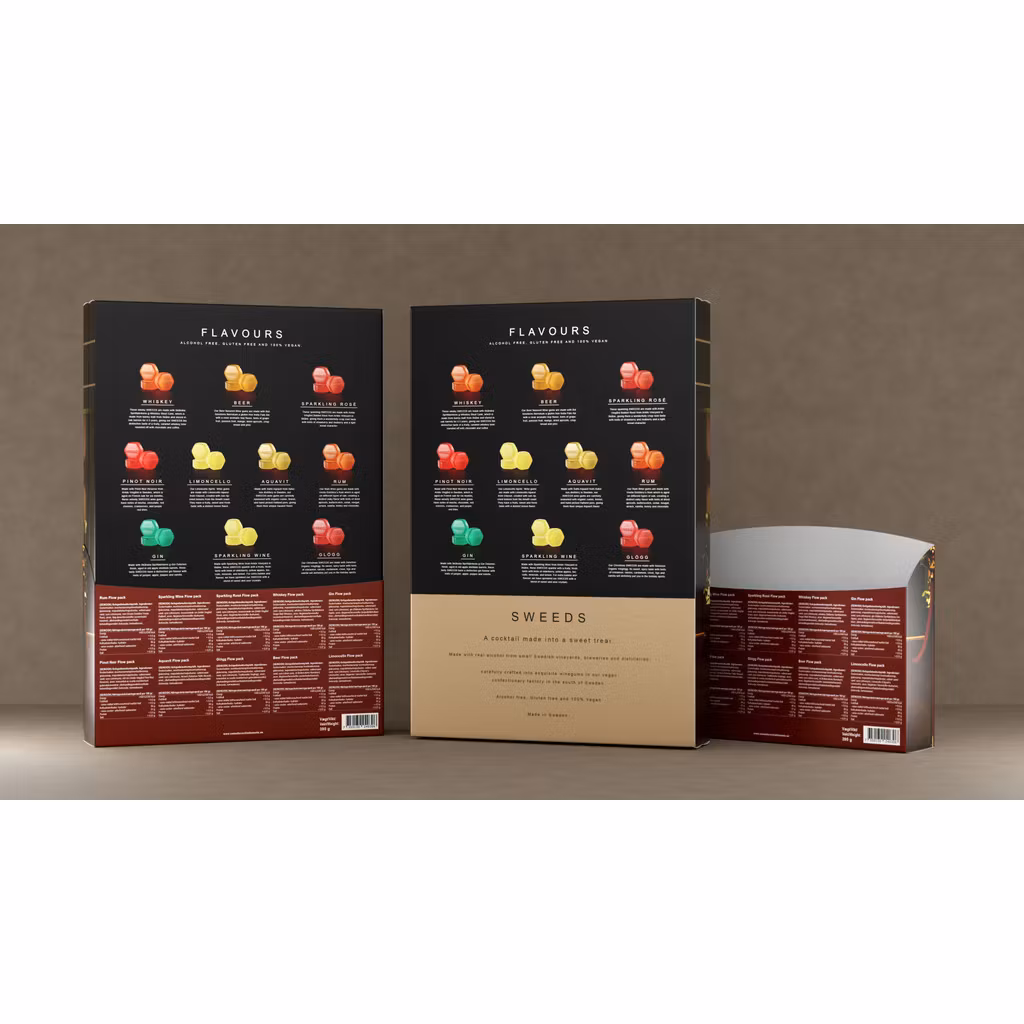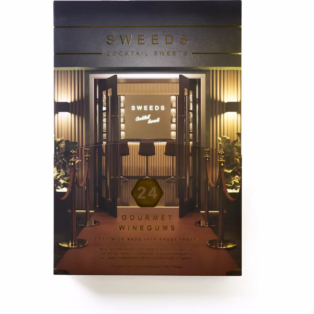 SWEEDS är en serie veganska och glutenfria godis som erbjuder en unik smakupplevelse genom att kombinera cocktail- och vinsmaker i vingummiform. De tillverkas i en vegansk konfektyrfabrik i Skåne och har blivit populära för sin fräscha och vuxna smakprofil. Tillverkade med äkta alkohol från svenska vingårdar och destillerier.