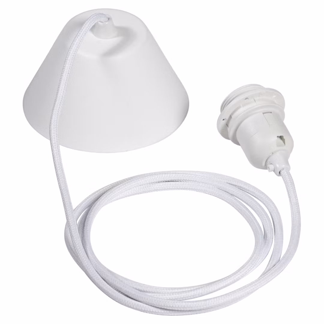 Takupphänge i textil som är 2,1 meter lång, har ett E27 ringfäste och en kopplingsplint.