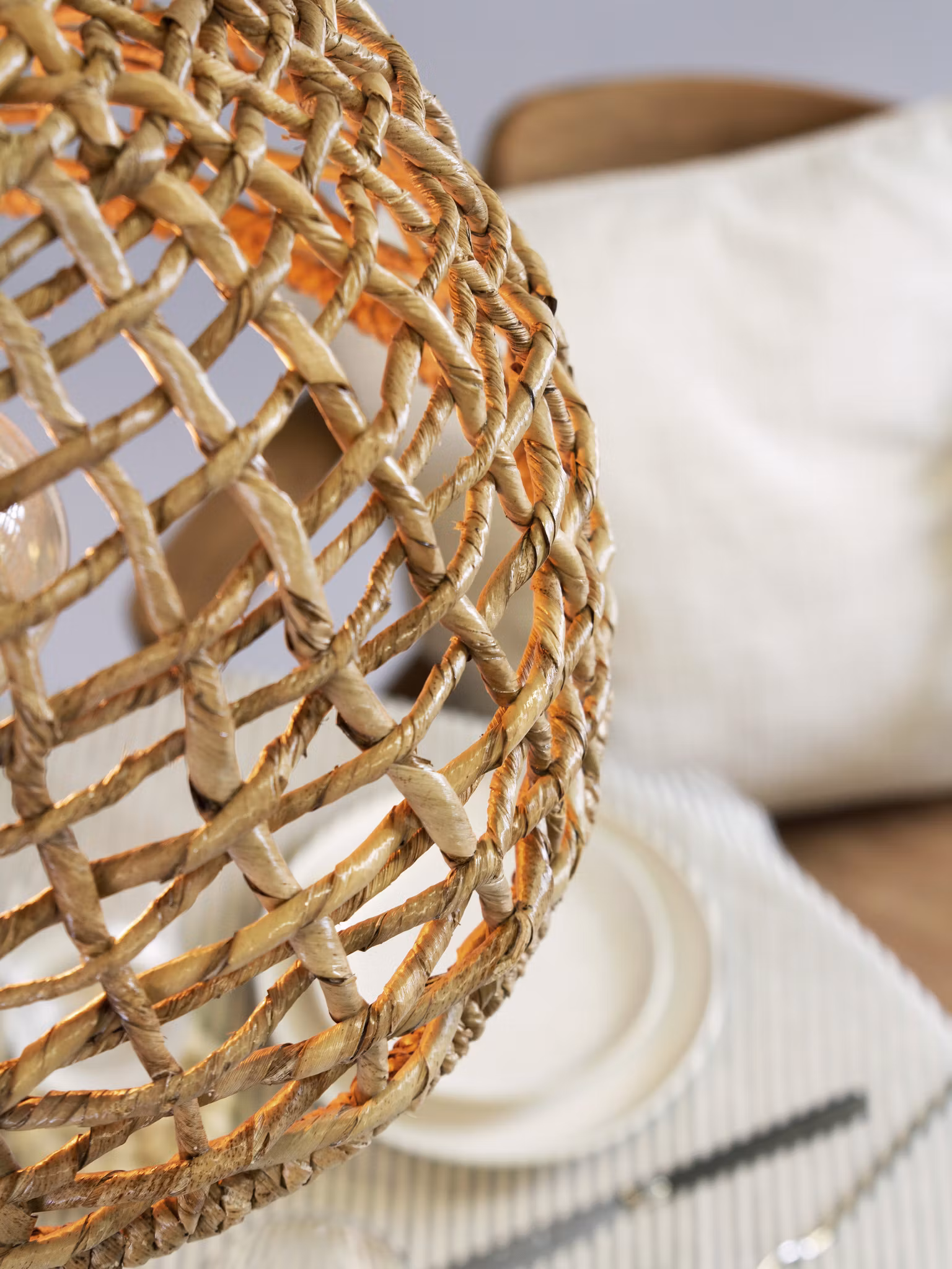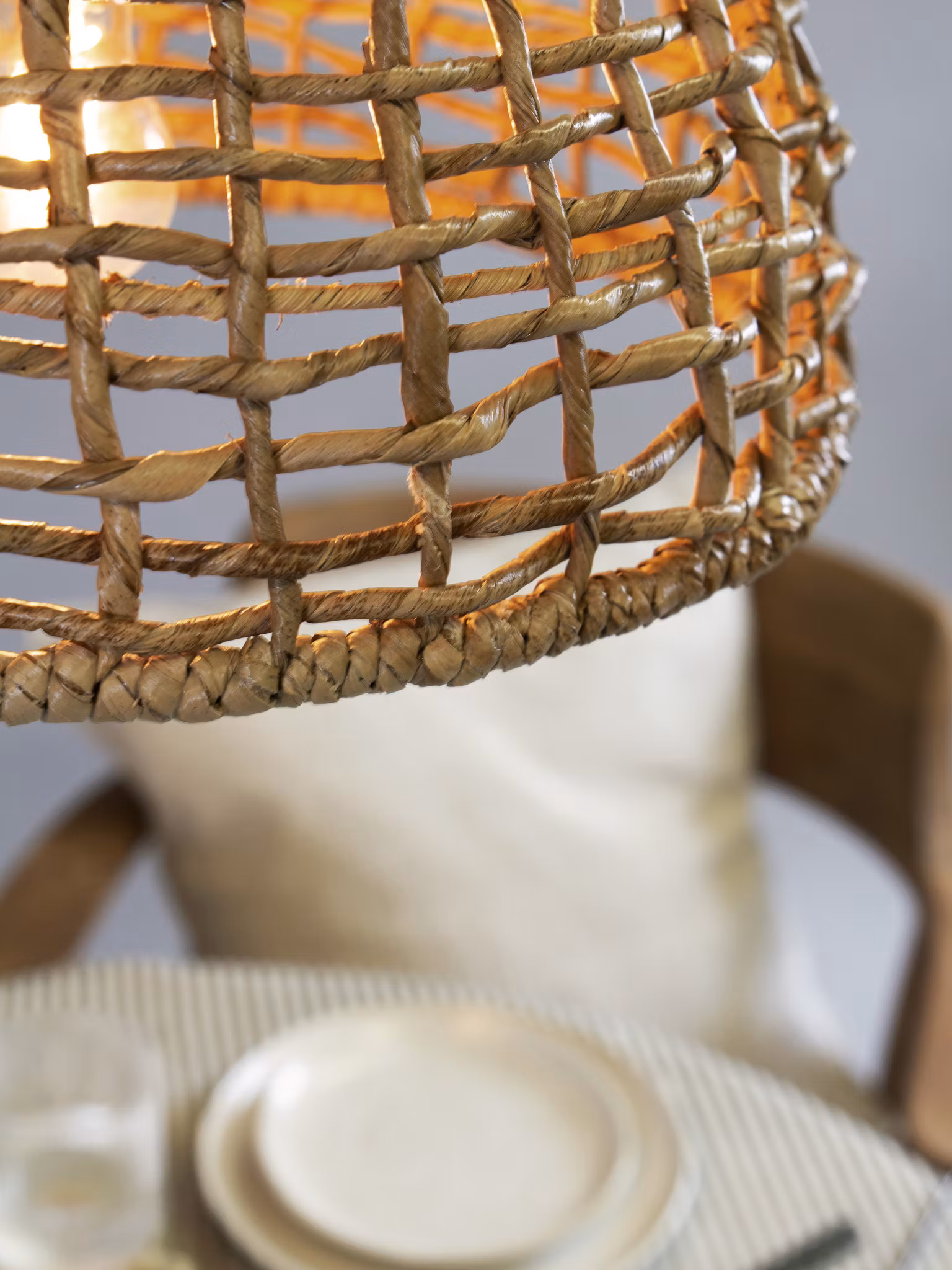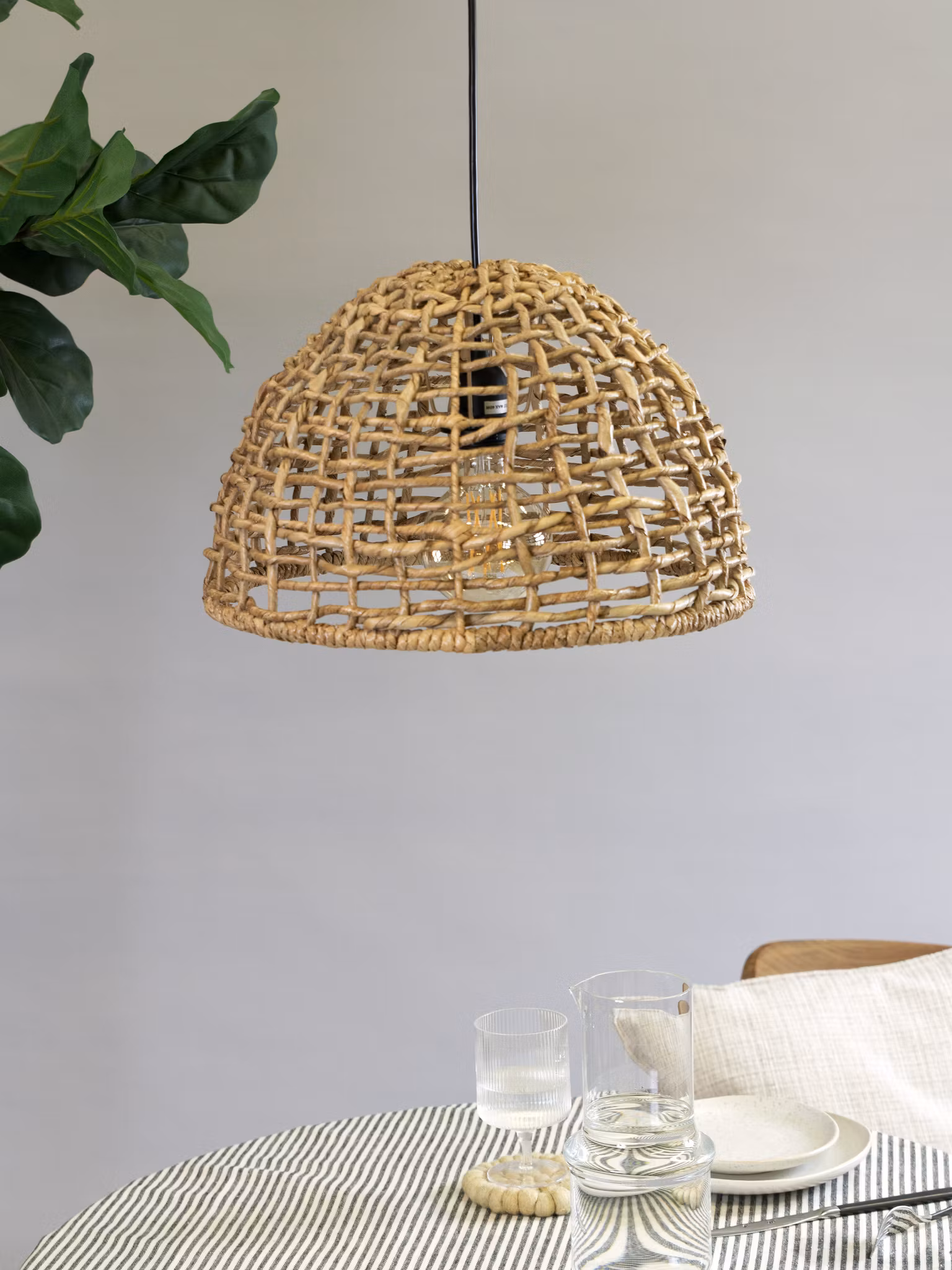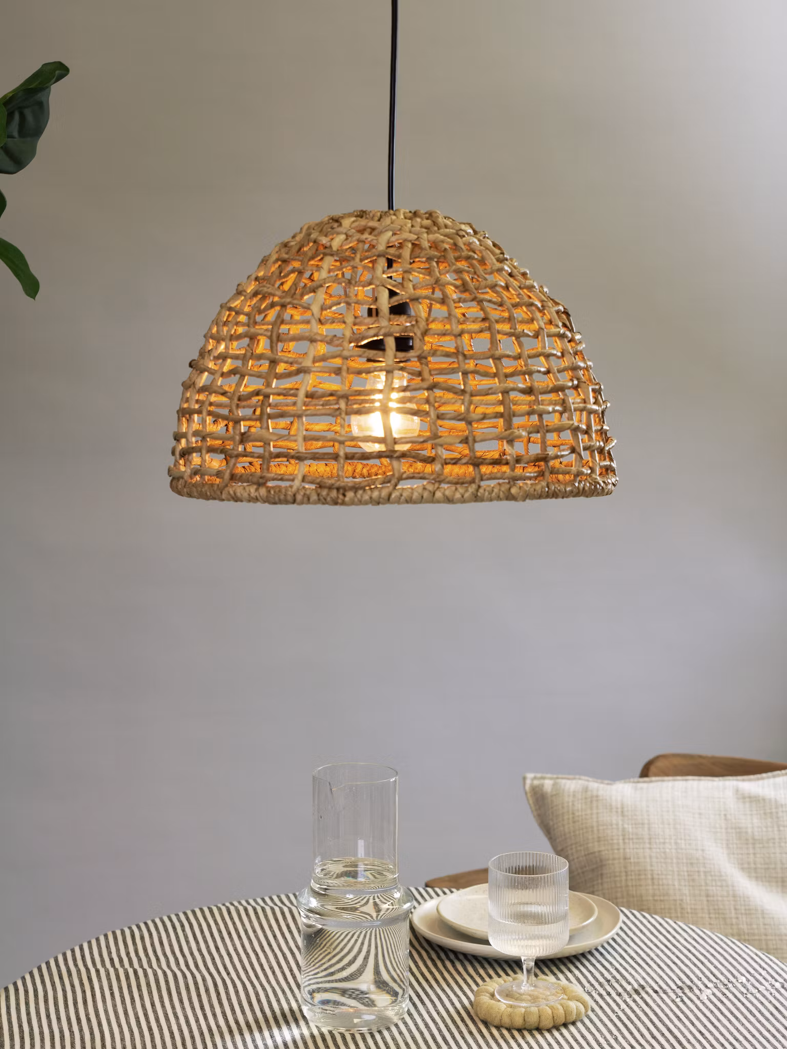 Cebu taklampa är en vacker skärm flätad i naturmaterial. Fungerar lika bra i växthuset och uterummet som inomhus.