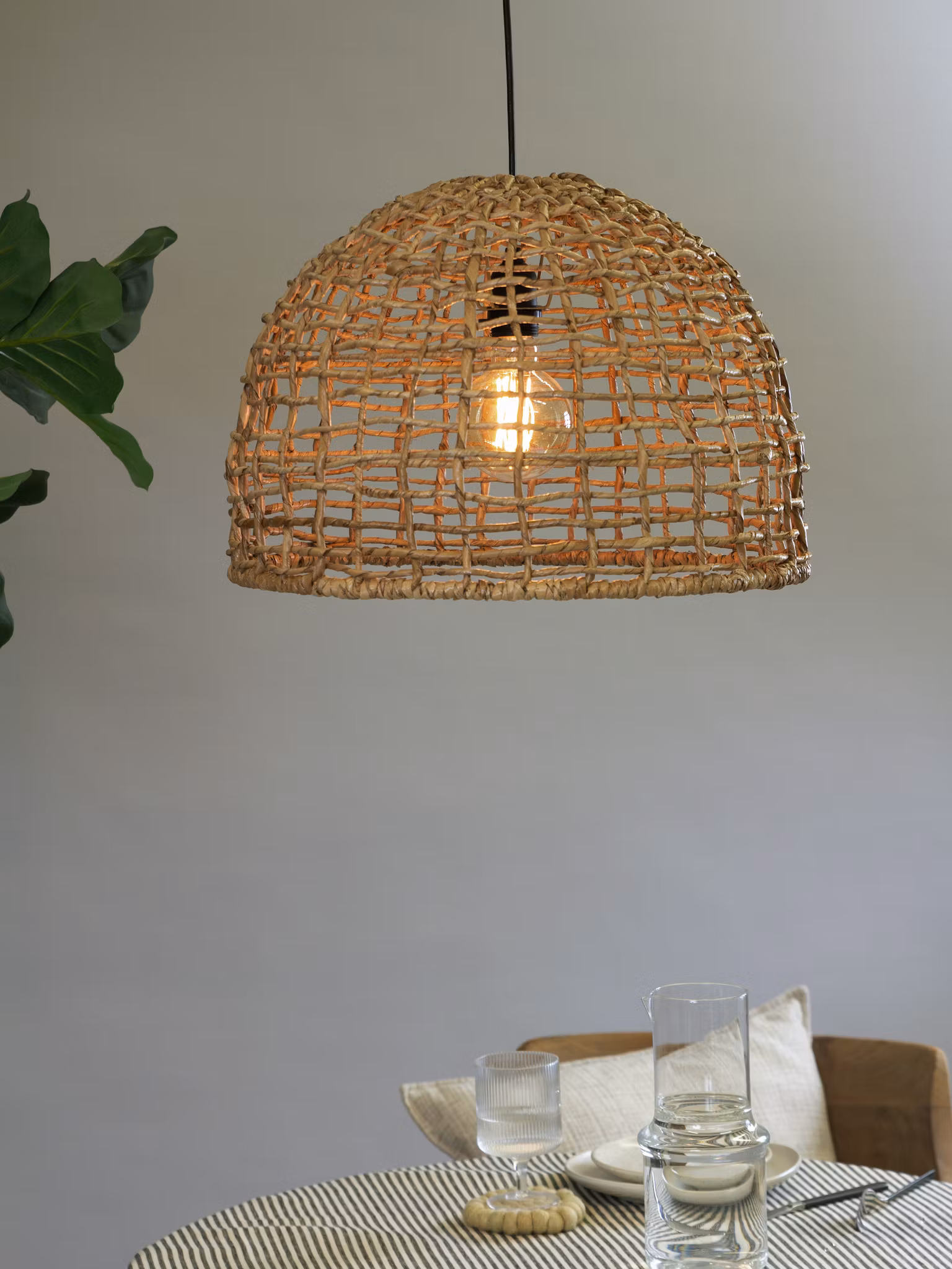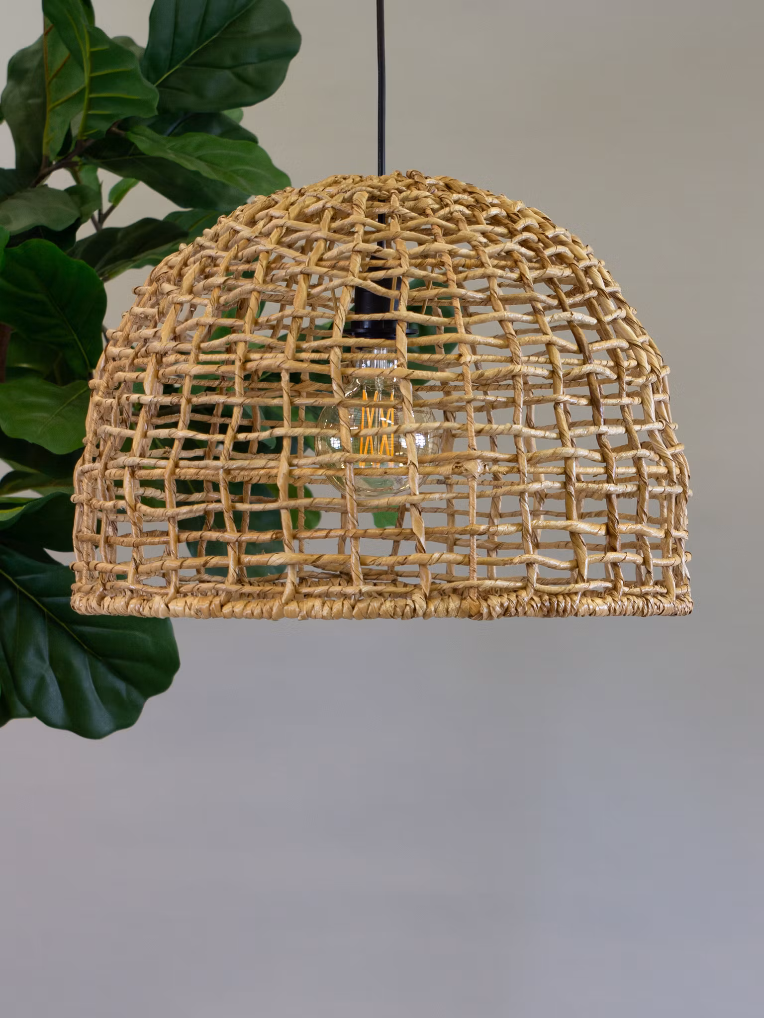 Cebu taklampa är en vacker skärm flätad i naturmaterial. Fungerar lika bra i växthuset och uterummet som inomhus.