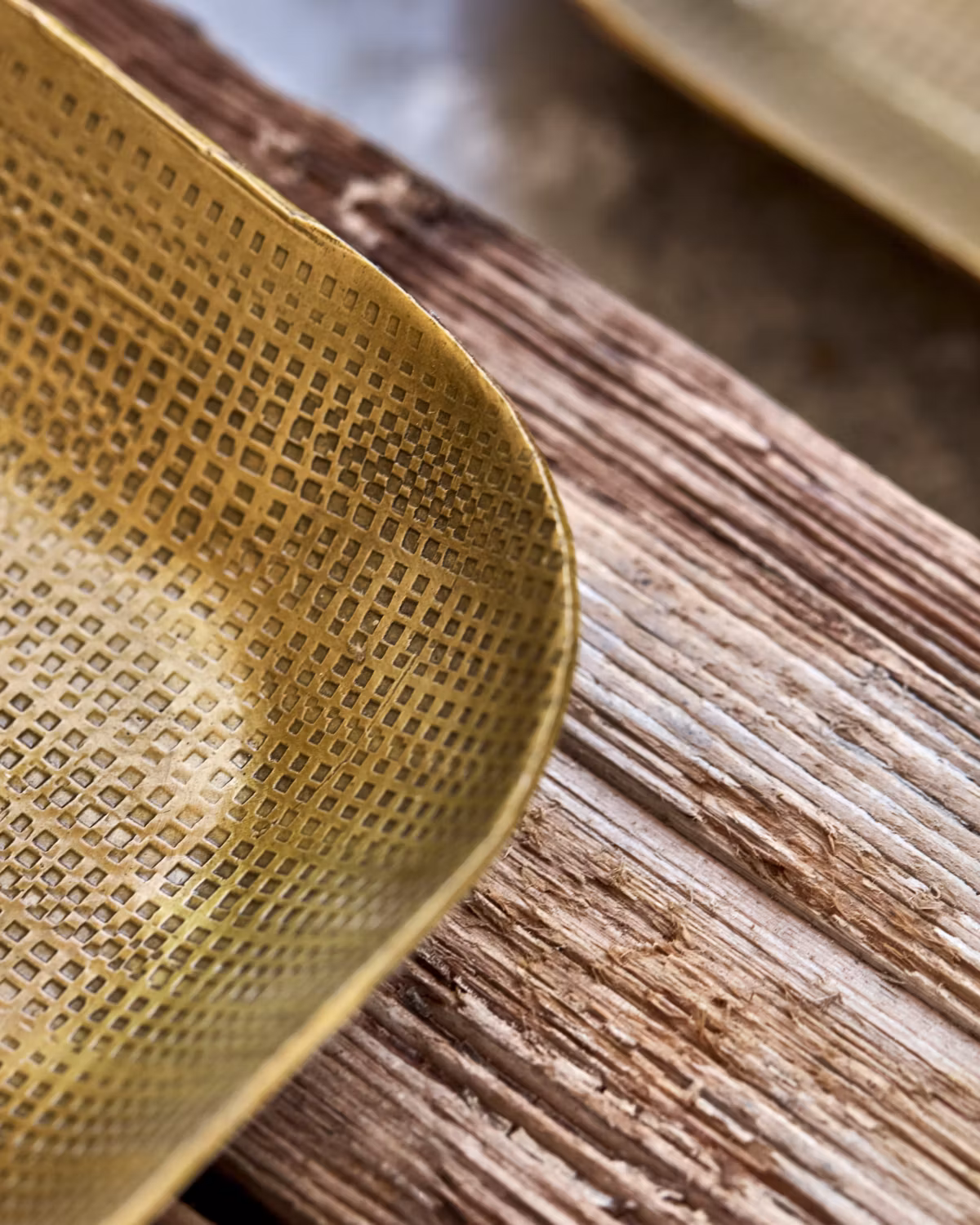 Ge din heminredning värme med dessa handgjorda brickor, som visar upp en rik gyllene finish.