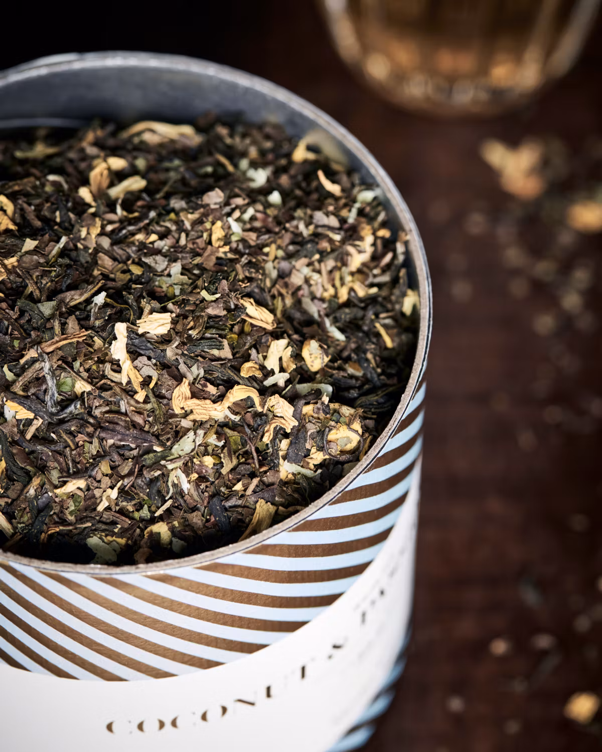 Detta underbara te kommer att ge dig en härlig värme och leda dina tankar till ett vackert semesterparadis. Denna teblandning är gjord av vitt te, tillsatt med bland annat kokosflingor och flagor av passionfrukt, vilket ger en mycket speciell och djup smak - kombinationen av kokos och passion är helt fantastisk och välsmakande. Häll 70°C varmt vatten över teet och låt det stå i 2-4 minuter för att uppnå den perfekta smakupplevelsen.