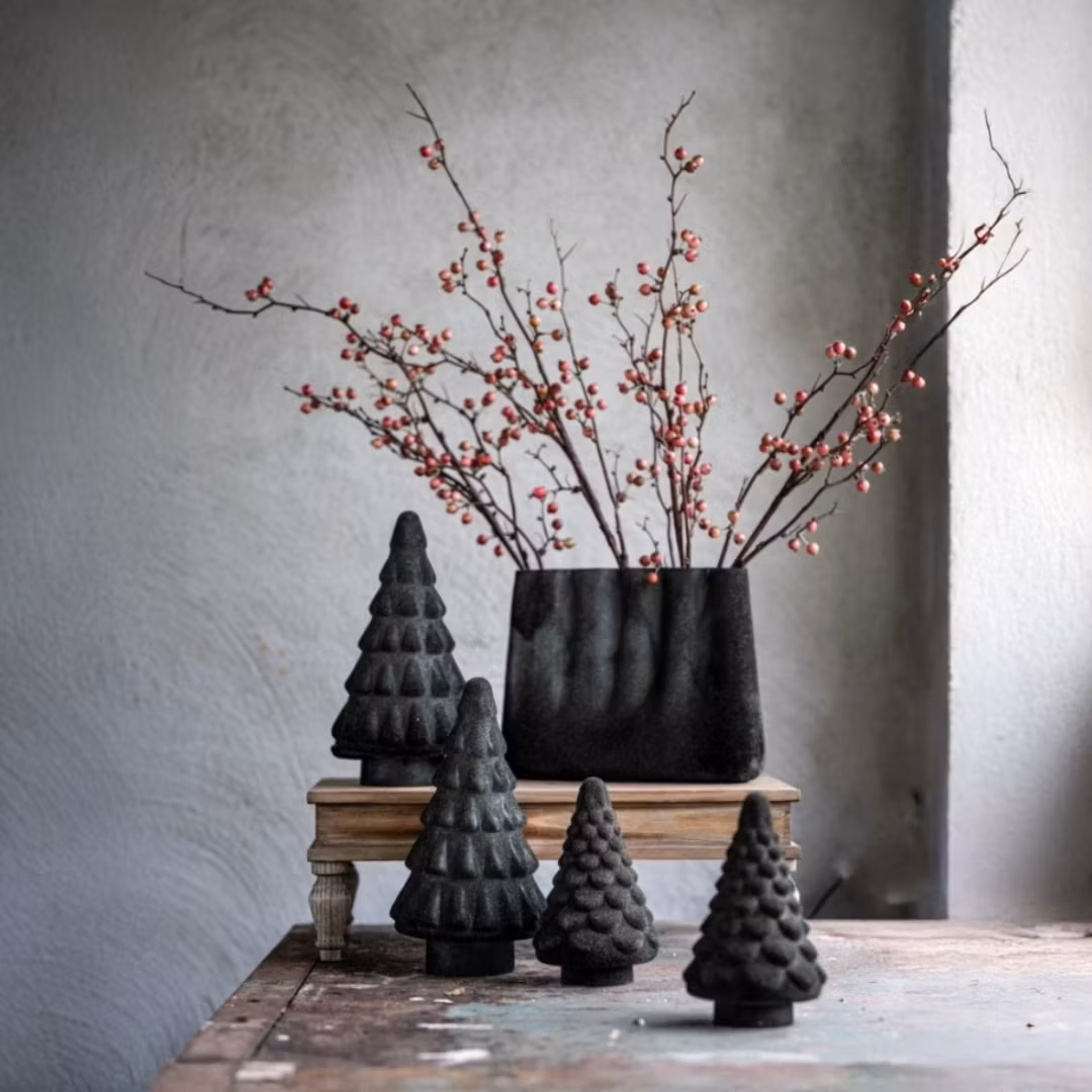 Röda bär ger vinterns arrangemang en extra julig känsla.