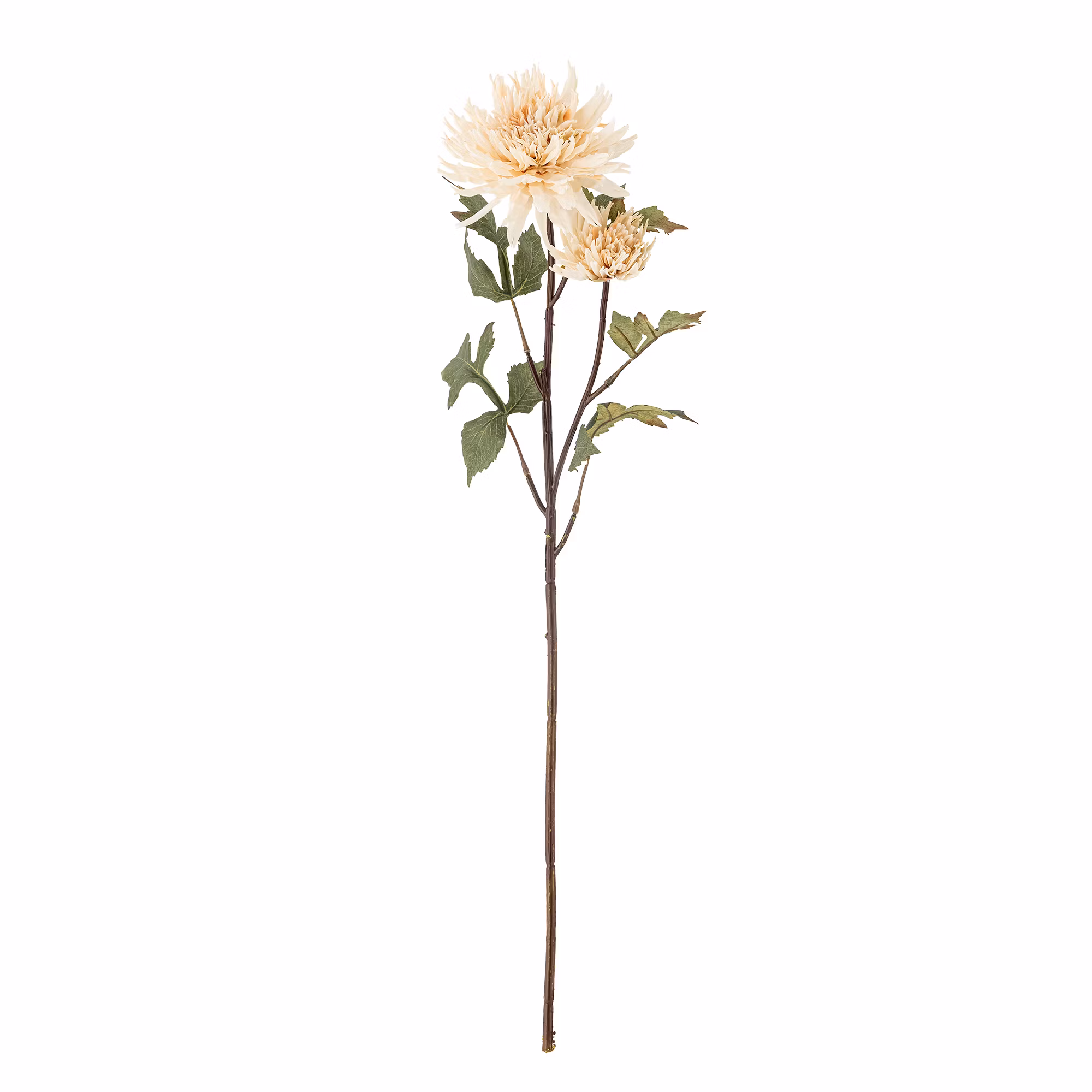 Konstgjord krysantemum med vackra blommor i krämvit färg och detaljerade gröna blad som ger en livfull känsla.