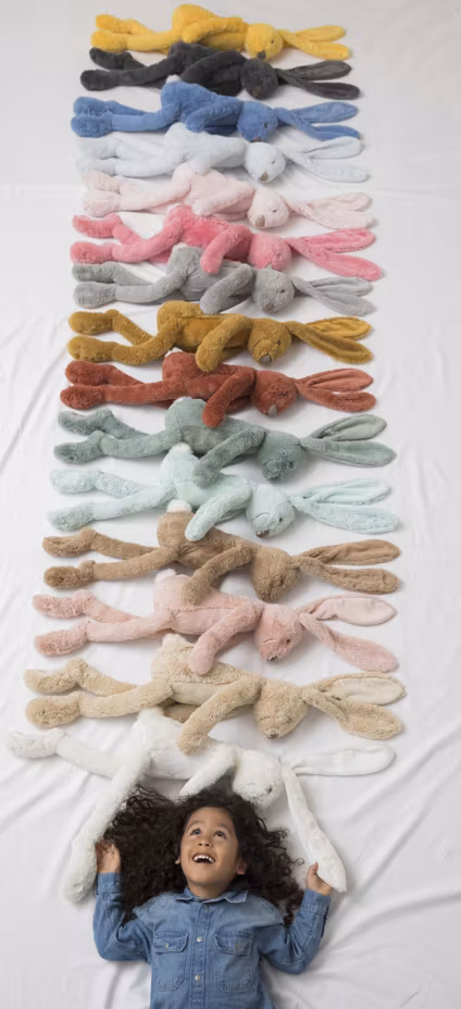 Med sina långa öron, långa armar och långa ben är denna kanin perfekt för små händer att hålla i, och han är supermjuk och kramgo.