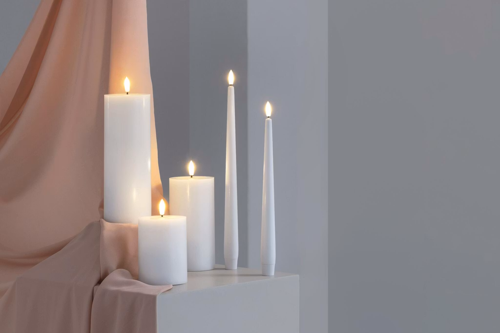 Blockljusen har ett lager av riktigt paraffinvax och en "smält" topp kring veken vilket ökar den verklighetstrogna känslan.