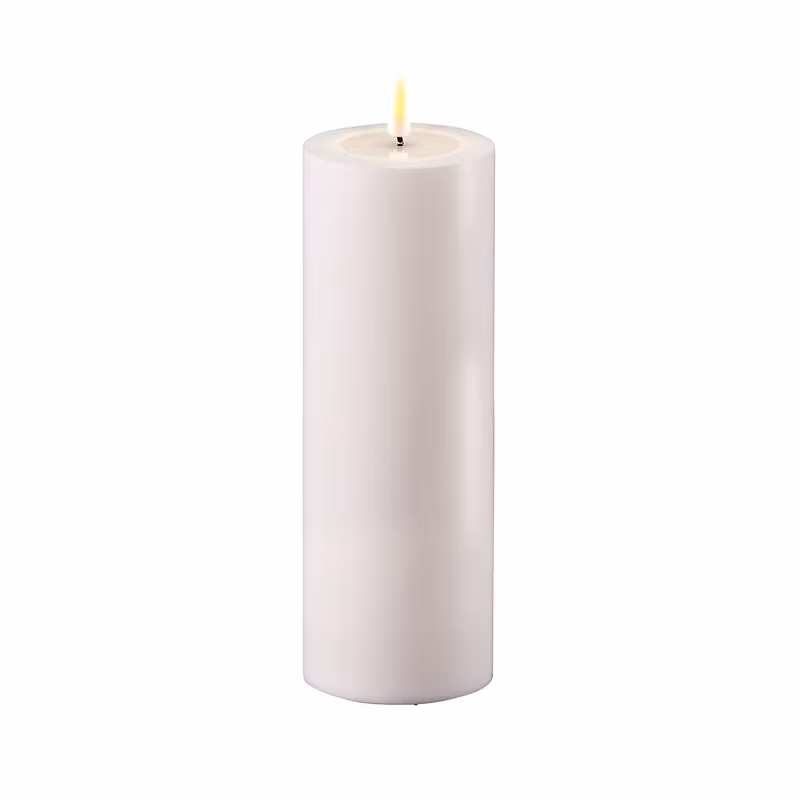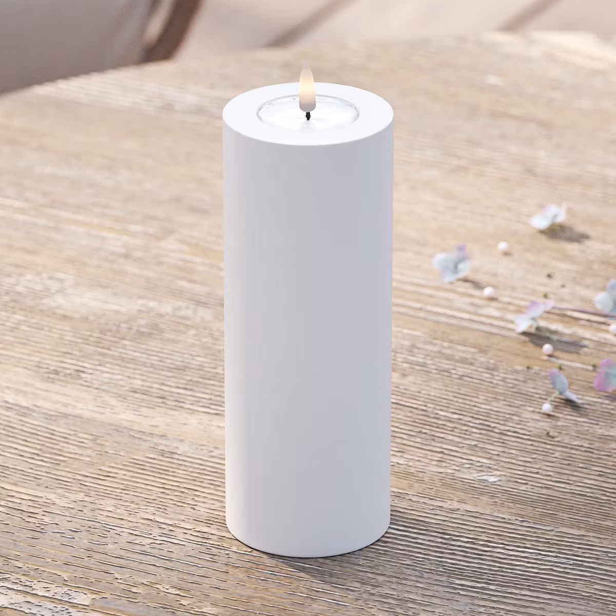 Ljusen är tillverkade av hård plast, som kan motstå alla väderförhållanden. Detta material säkerställer att ljuset inte smälter i solen och är vattentätt (IP44). Toppen är belagd med harts för att ge det autentiska, smälta utseendet hos ett riktigt ljus.
