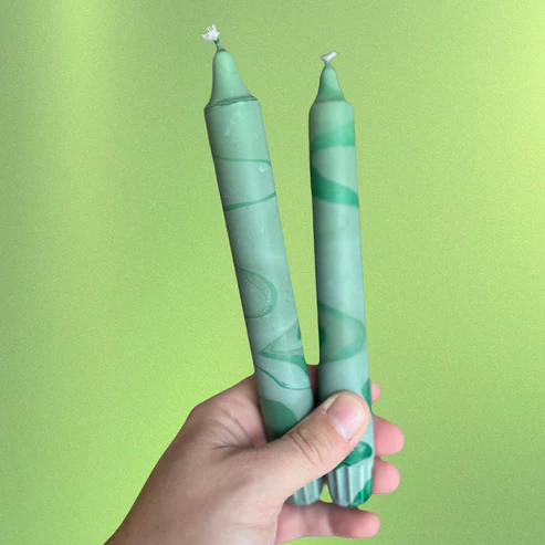 Green Whirl är ett marmorerat stearinljus i handdekorerade nyanser av grönt – från mjuk mint till djup smaragd.