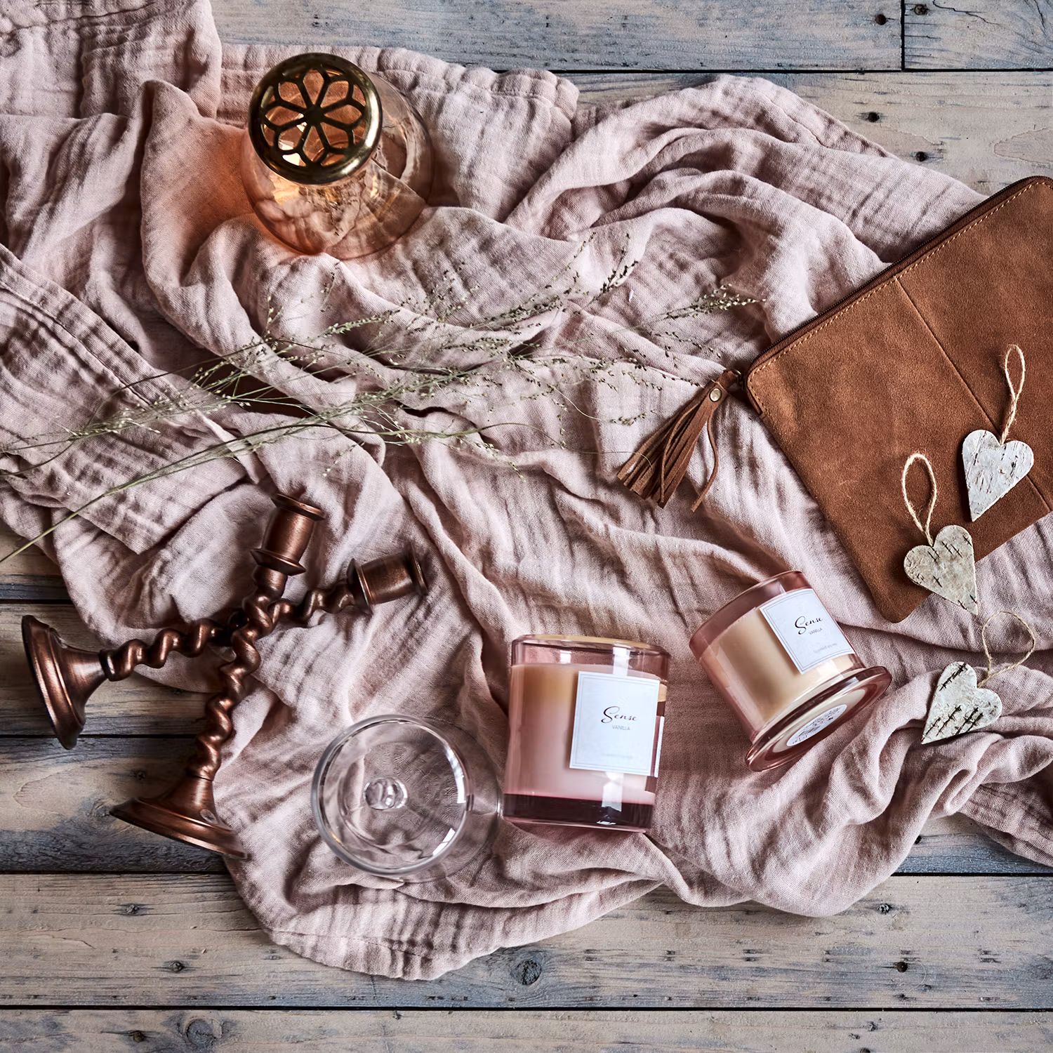 Sojaljus i kupa med doft av vanilj.