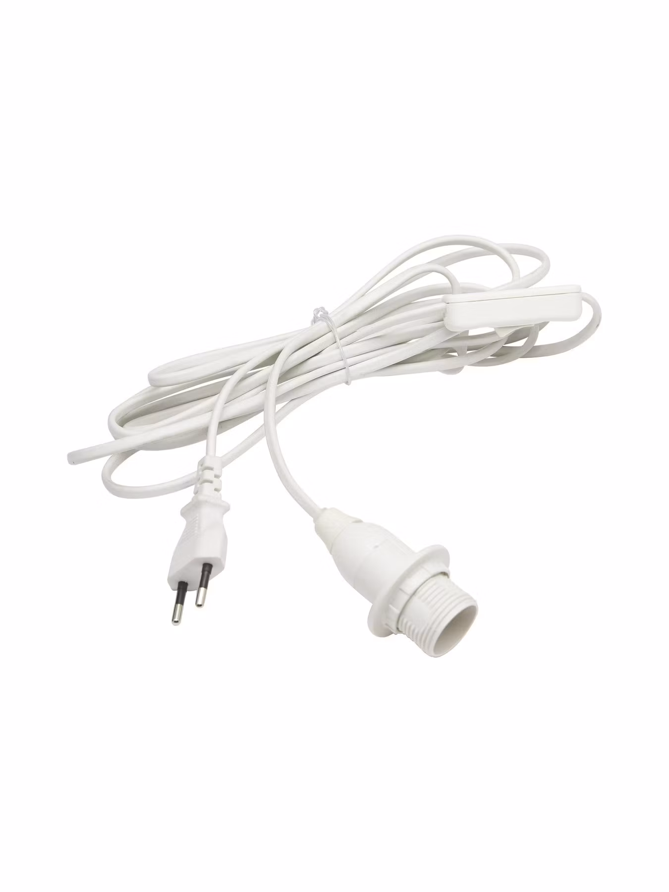 Vitt sladdställ som är 4m långt och har en E14 lamphållare med ringfäste, strömbrytare samt väggkontakt. Strömbrytare är ca 1,5m från väggkontakten.Artikel nr:1