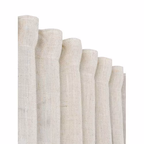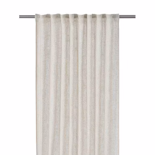 Har multiband i ovankant, fållade långsidor och overlocksöm i nederkant. Använd snabbfållningsband för att få rätt längd på gardinen.