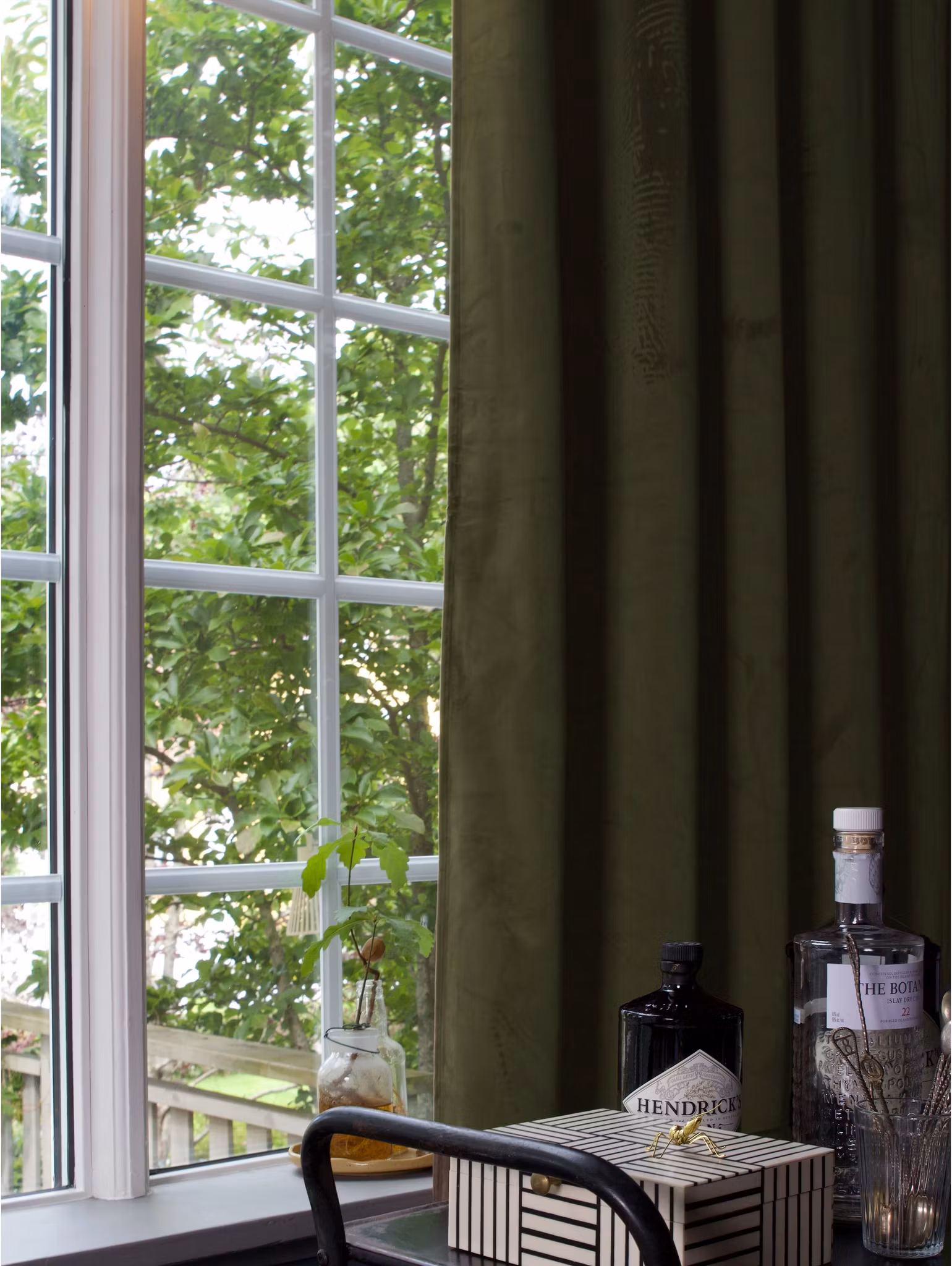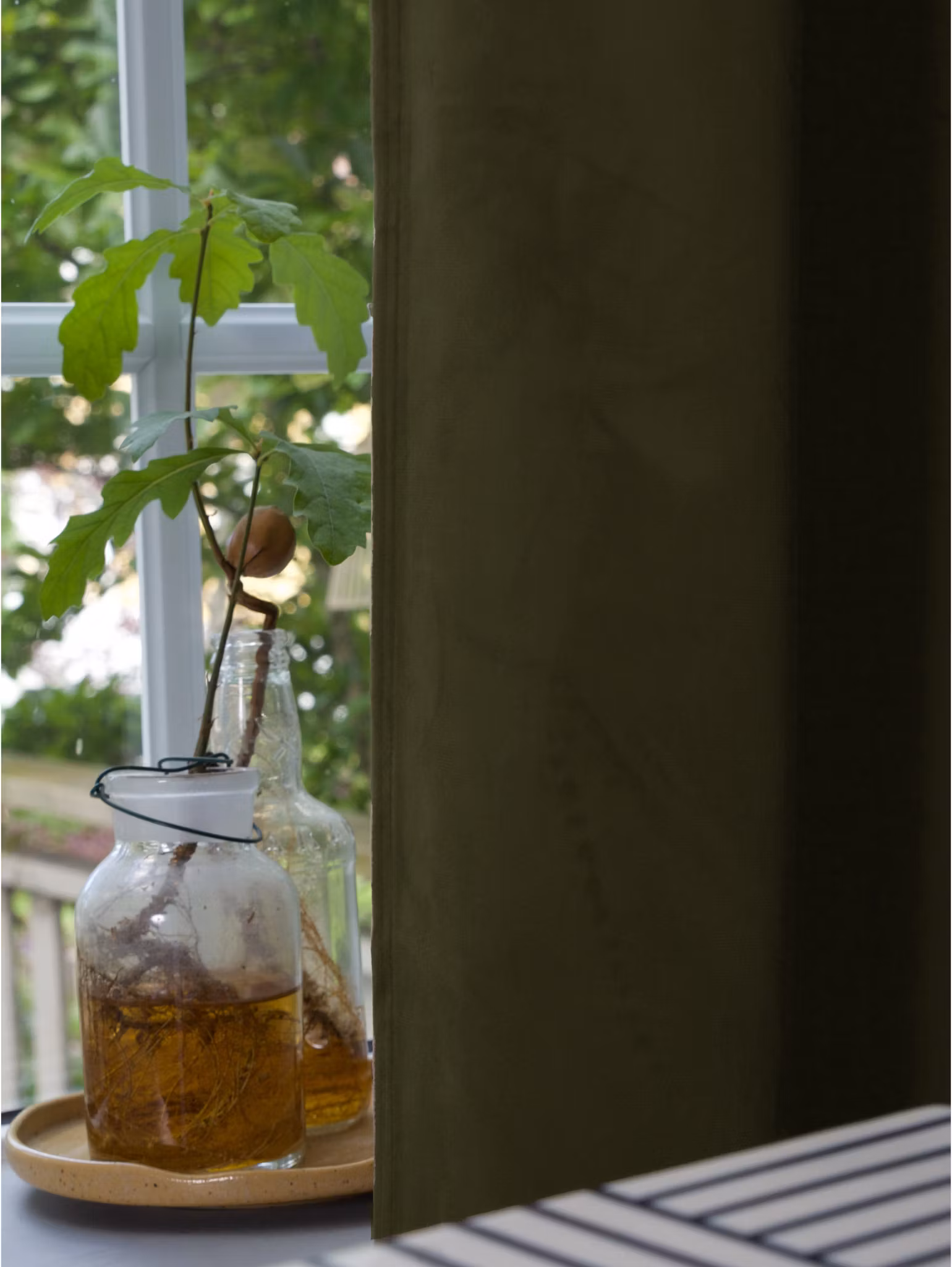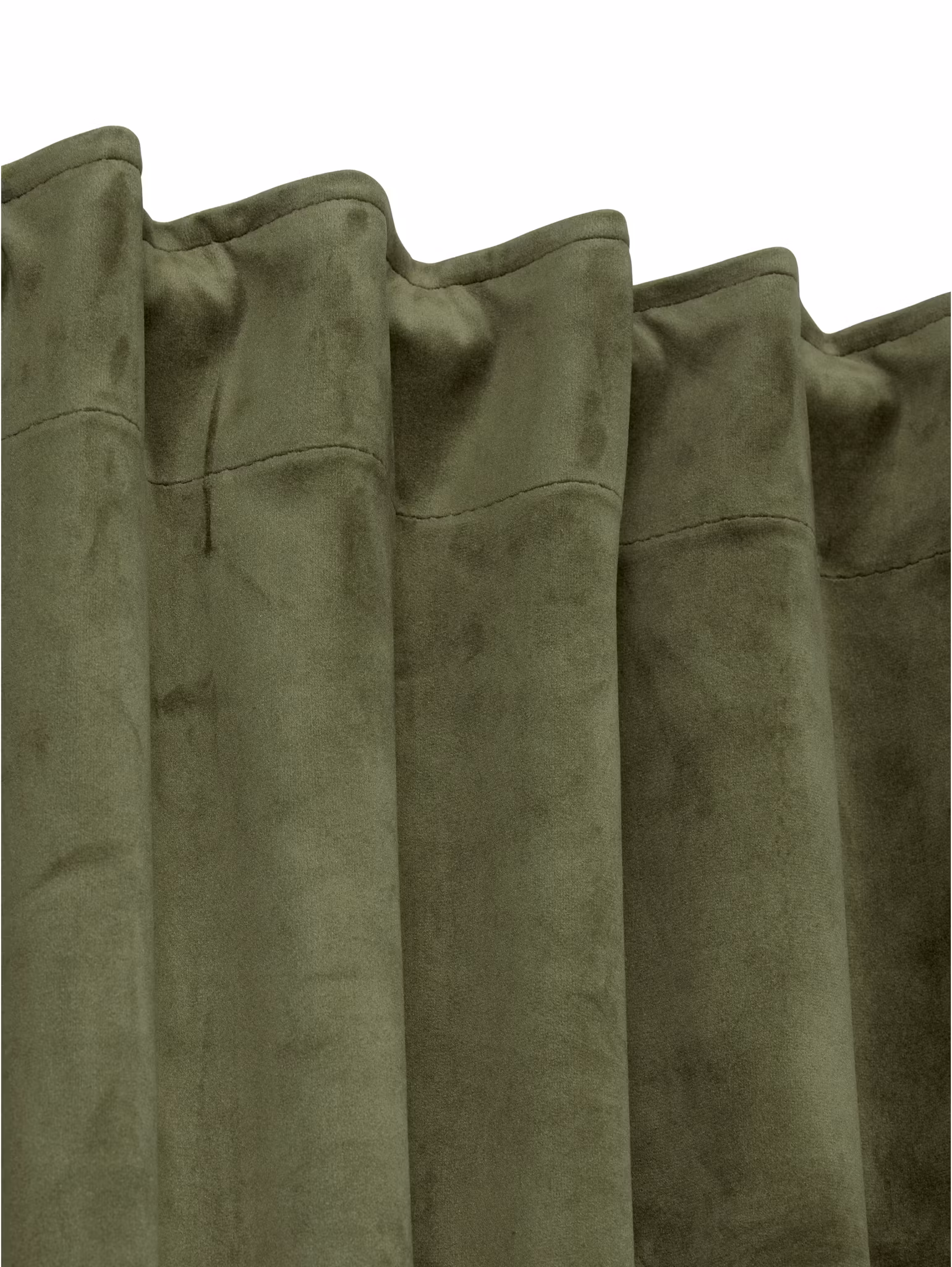 Tygets tjocklek ger en lätt mörkläggningseffekt. Gardinerna har multiband i överkanten, sydda långsidor och overlock-söm i nederkanten. Multibandet är en flexibel lösning som gör att gardinen kan hängas med metallkrokar eller direkt på stången, beroende på vilken veckningseffekt du önskar. Använd easy fix-tejp för att justera längden utan att använda symaskin. Måttet för varje gardin är 135x280 cm, men tänk på att krympningen kan vara upp till 2 % efter tvätt.