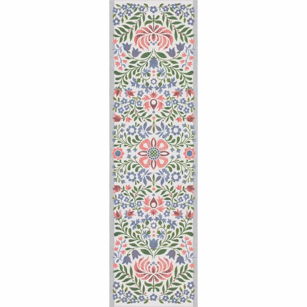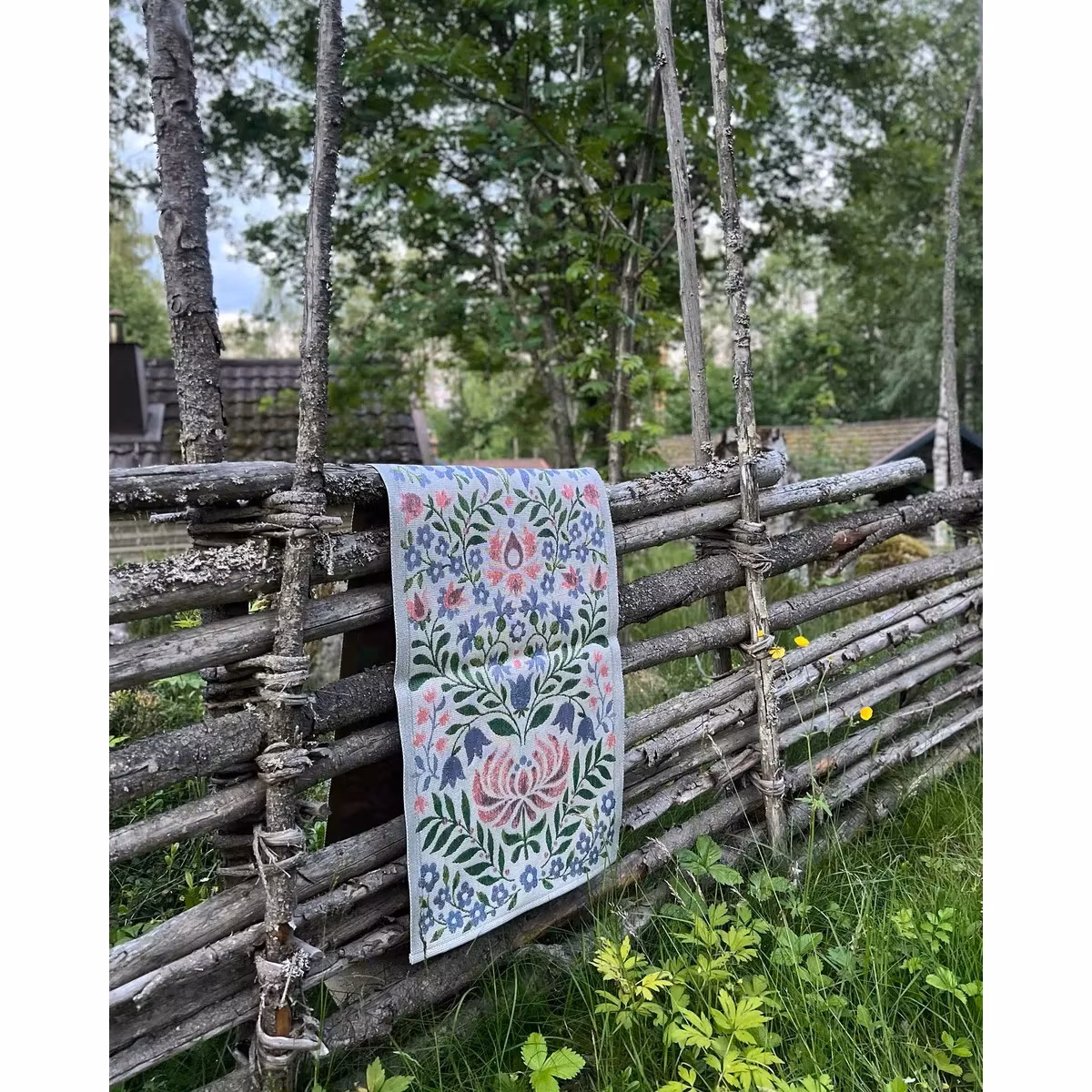 Vackert allmogemönstrad löpare som ger en känsla av svunna tider och rustik svensk sommar.