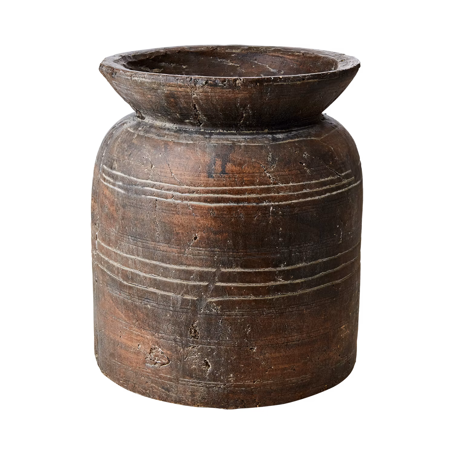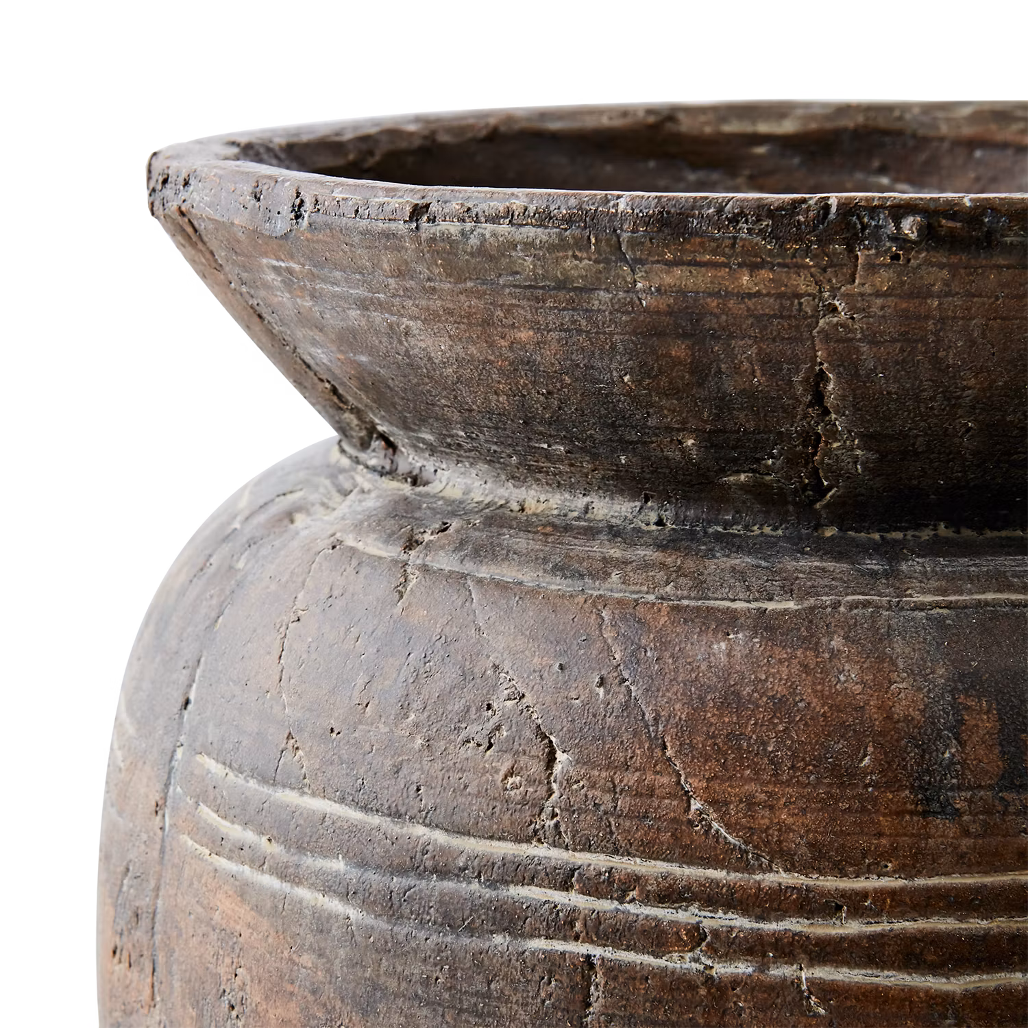 Krukans rustika uttryck ger den en naturlig vintage-look. Den står fin som solitär men passar också bra som blomkruka eller ytterkruka till gröna växter.